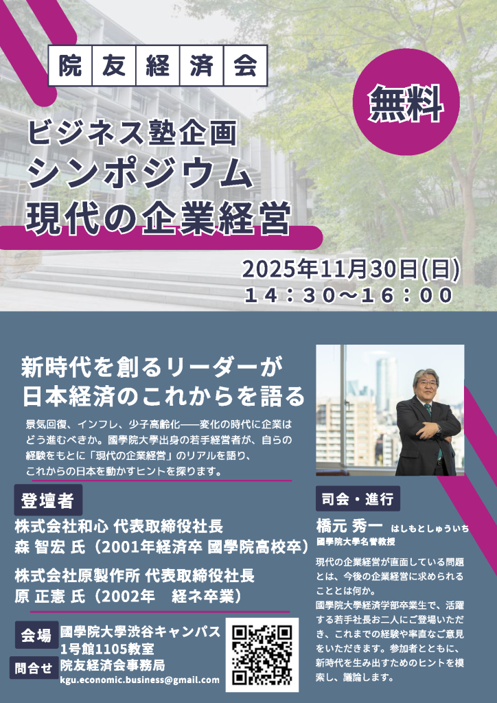 その中で、経済学部卒業生が参加している「院友経済会」の主催するシンポジウムで、